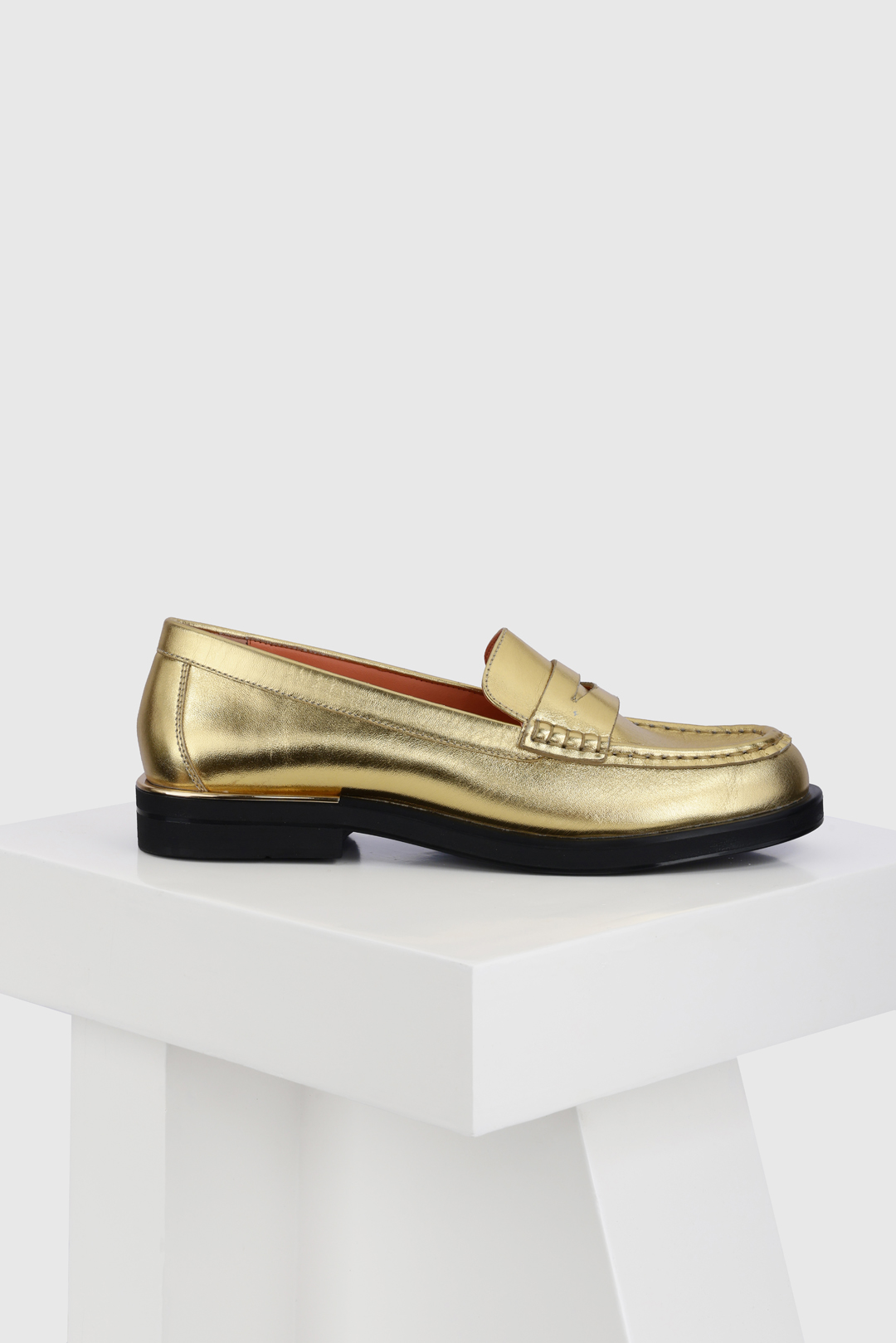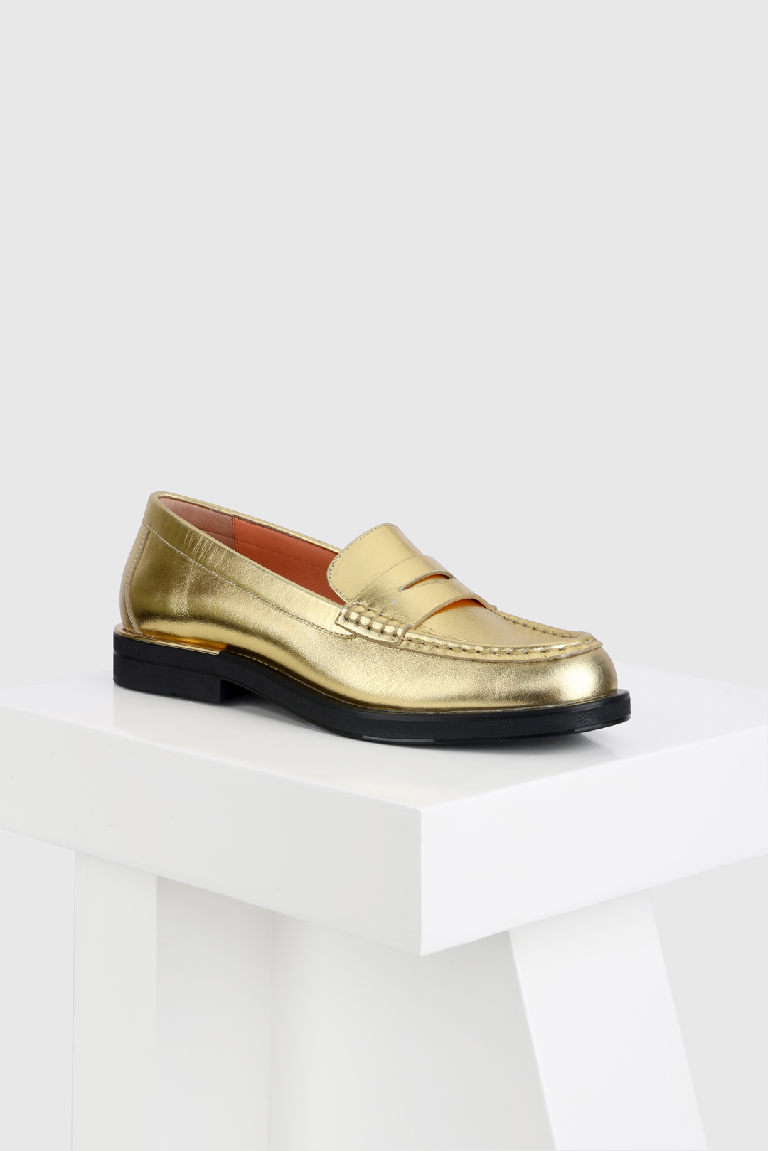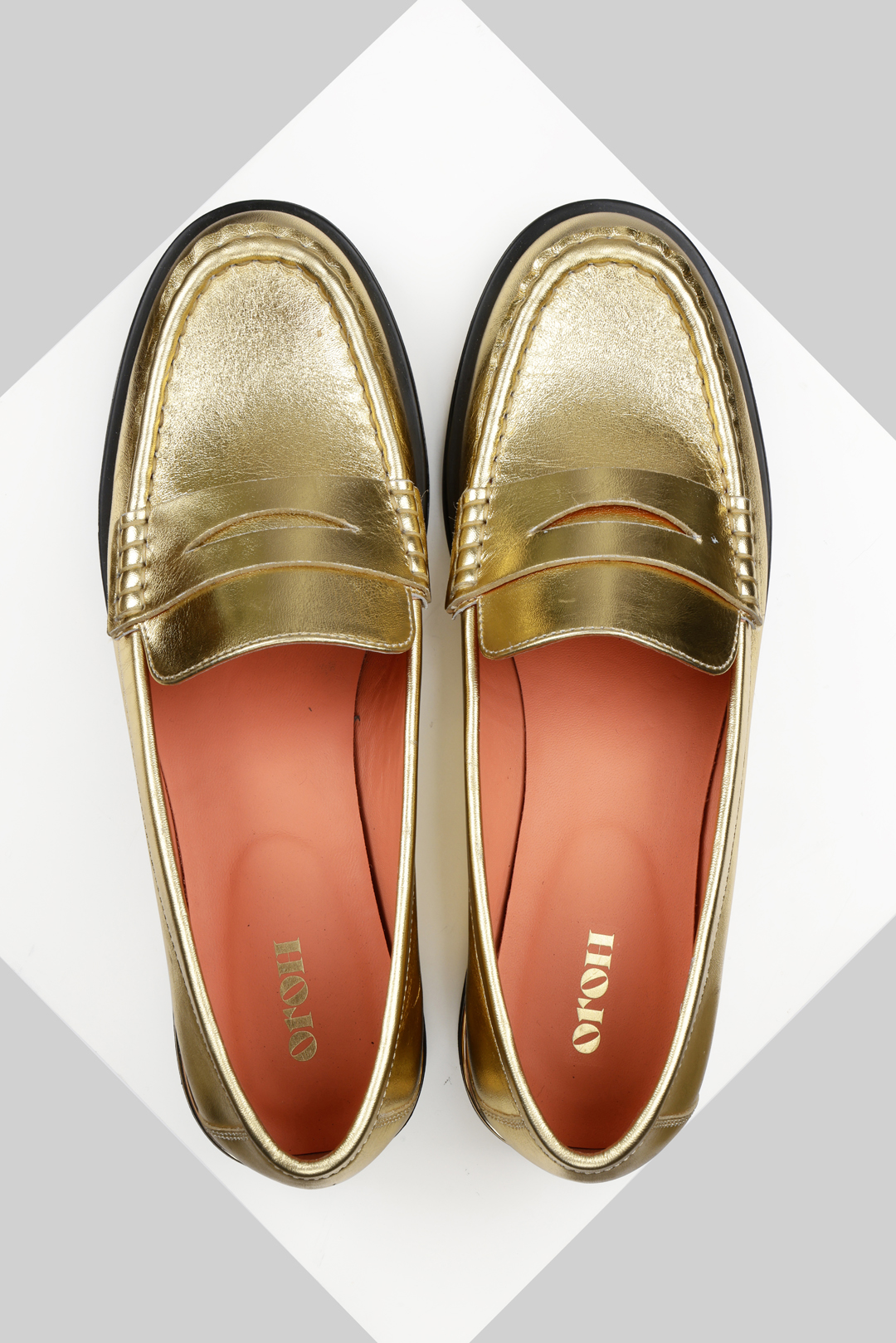 Jaca is a round-toe moccasin with a low heel. Available in gold foil and off-white leather, this shoe is perfect for your everyday needs. A simple metallic trim over the heel adds a little Oroh twist to a classic. All our shoes are designed in Europe and manufactured using premium leather.